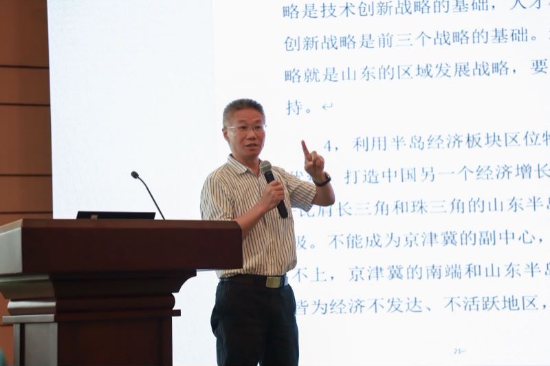 会上,来自全国各领域、各地区的9位知名专家学者围绕“十四五”区域发展战略与山东高质量发展发表主题演讲,为山东“十四五”规划和实现高质量发展出谋划策。大会主题报告分两阶段依次进行。第一阶段主题报告由省政府发展研究中心副主任张彧主持,浙江大学经济学院教授、宁波大学商学院特聘院长金祥荣教授就“新发展格局中山东的定位和战略转型”进行剖析,强调了山东在“内外双循环”中的应有作为。