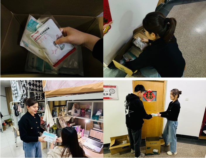 口罩可以有效阻挡空气中的颗粒物,降低粉尘对呼吸道的影响。无论是在校内上课还是在校外活动,老师和同学们都可以佩戴口罩,保护自己的身体健康。耳塞可以有效减少施工噪音对同学们的干扰,帮助他们更好地专注于学习和生活。这些耳塞设计舒适、安全,可以有效降低噪音对同学们的影响,让他们能够在安静的环境中学习和休息。结合同学们的时间安排,学硕、专硕团支部商议决定在3月20日晚上九点给各位同学发放暖心物资。