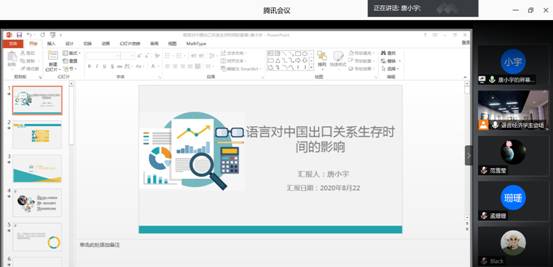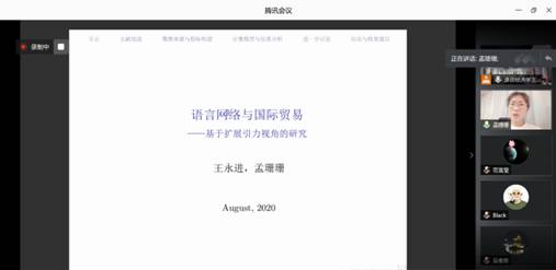 第三阶段论文代表大会发言由WilliamHill威廉希尔副院长孙涛教授主持。安徽财经大学唐小宇,广州大学人文学院/语言服务研究中心王海兰,中央财经大学经济学院王麓淙,南开大学经济学院国际经济贸易系孟珊珊,澳门大学中国语言文学系徐嘉忆依次汇报了题为《语言对中国出口关系生存时间的影响》、《深圳中国特色社会主义先行示范区建设中的语言问题》、《少数民族地区推普推动县域创新创业的实证研究:来自中越边境八县的证据》、《语言网络与国际贸易——基于扩展引力视角的研究》和《烟台芝罘话名动同形变韵/ɾə/的变异与区域语言经济发展研究》的会议论文。