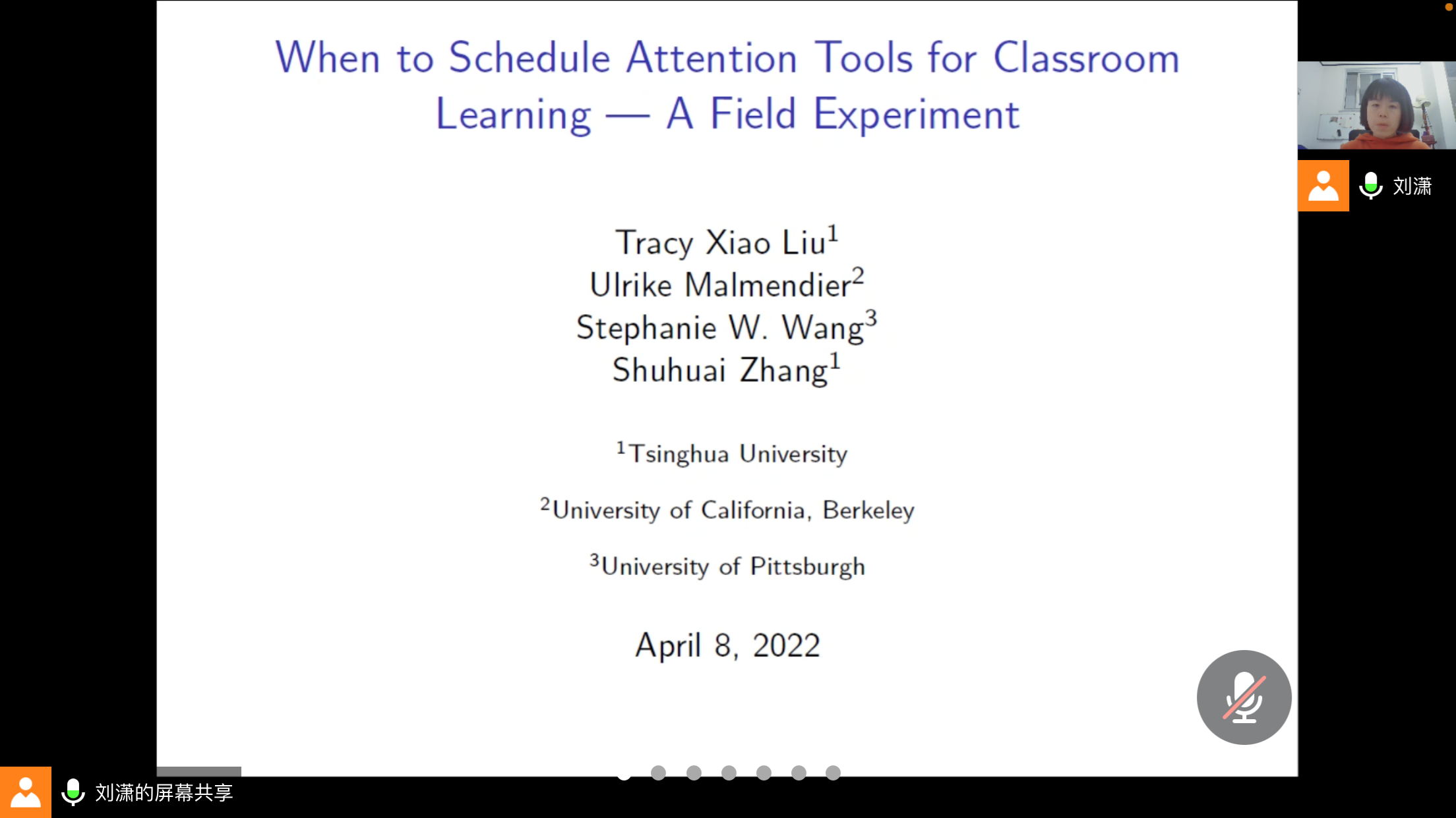 2022年4月8日,山大行为实验经济公开分享荟2022年第1期(总第17期)在腾讯会议线上平台召开,清华大学经管学院刘潇老师应邀做了题为“Encouraging Engagement in Classroom Learning: A Field Experiment”的主题报告。WilliamHill威廉希尔姜树广教授担任主持人,学院相关教师和博士、硕士研究生及校外同行共同参加了此次报告。