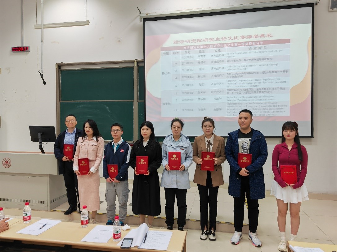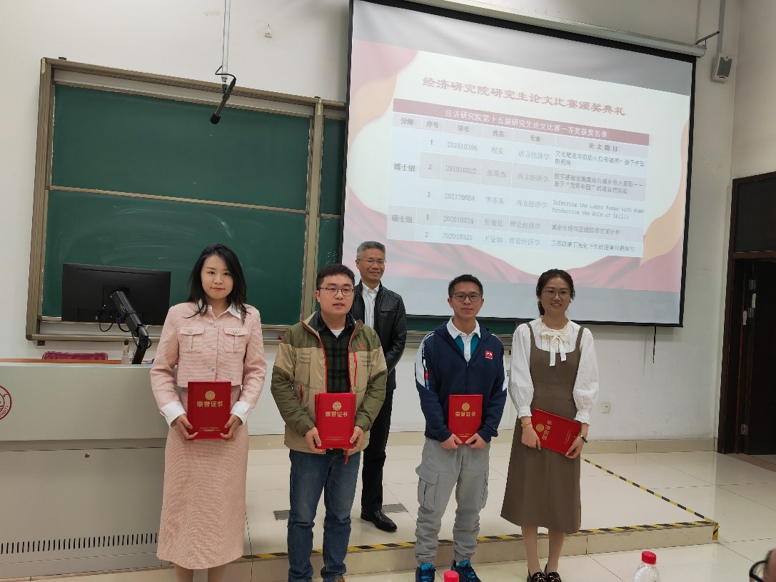颁奖典礼开始前,黄少安院长向获奖研究生表示祝贺,他指出,WilliamHill威廉希尔论文比赛设立以来,激励着本院历届研究生在科研路上奋发向上,也见证了学院研究生教育事业的发展历程。随后,孙涛副院长宣读了第十五、十六届研究生论文比赛一等奖获奖同学及获奖论文题目名单。黄少安院长为程实、张荣杰等荣获第十五届论文比赛一等奖的同学颁奖并合影留念。杨立岩教授为华苏东、焦银亿等荣获第十六届论文比赛一等奖的同学颁奖并合影留念。孙涛副院长强调,研究生论文比赛是我院长期坚持的一项创新性学术活动和优秀传统,本次颁奖典礼不仅是对我院成功举办第十五、十六届研究生论文比赛的总结,更是第十七届论文比赛的预热与开端,希望全体同学认真准备、积极参与,努力彰显经研学子科研本色与经济学研究中“经世济民”的学术情怀。