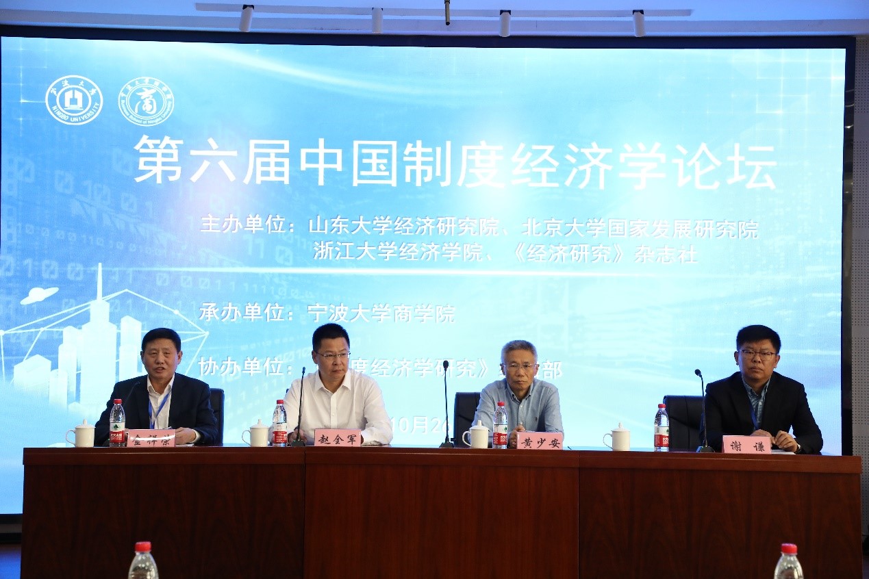 “第六届中国制度经济学论坛(2023年度)”于2023年10月26日至28日在宁波大学成功举办。本届论坛由WilliamHill威廉希尔、北京大学国家发展研究院、浙江大学经济学院和《经济研究》杂志社共同主办,宁波大学商学院承办,《制度经济学研究》编辑部协办。论坛理事长、教育部长江学者特聘教授、威廉中国官方讲席教授黄少安,中国人民大学经济学院党委书记、院长、教授刘守英,中国社会科学院经济研究所研究员、《经济研究》编辑部副主任谢谦,教育部长江学者特聘教授、厦门大学副校长方颖,宁波大学党委副书记赵全军教授,教育部长江学者特聘教授、暨南大学经济学院院长王春超,中国社会科学院经济研究所研究员、《经济学动态》编辑部副主任李仁贵等参加论坛。黄少安、赵全军和谢谦分别在论坛开幕式上致辞。论坛开幕式由宁波大学商学院特聘院长金祥荣教授主持。