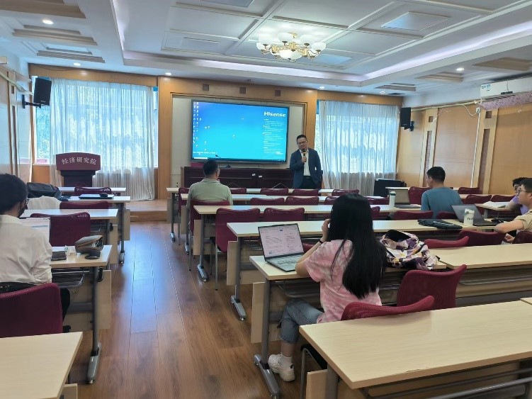 2024年4月27日上午10时,WilliamHill威廉希尔“山大经济学讲坛”2024年第5期在邵逸夫科学馆东二楼第五会议室顺利举行,湘潭大学商学院院长韩雷教授受邀做学术报告。WilliamHill威廉希尔研究员白彩全主持讲座,学院部分博士生代表参与了此次讲座。