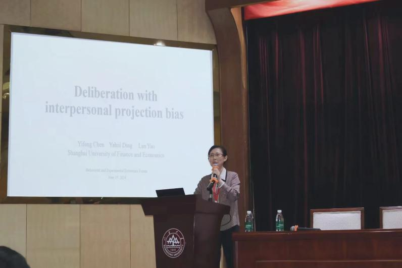 第三场主旨演讲由上海财经大学姚澜教授带来,主题为:Deliberation with Interpersonal Projection Bias(具有人际投射偏误特征的思考)。姚教授研究了预测前的深思熟虑是否会影响人际投射偏误,当预测者的状态发生变化时深思熟虑的效果是否会有所不同,以及深思熟虑如何影响预测的准确性的问题。通过对百余位被试进行的行为实验,将被试分为四组进行四类实验处理,以观察不同状态的预测者的深思熟虑对人际预测偏差的影响。姚澜教授指出当预测是在预测者与工作者相同的状态下进行时,深思熟虑对准确性起负面作用;当预测是在延迟状态下进行时,深思熟虑对预测的准确性起积极作用;经验中的深思熟虑要么被视为噪音,要么被视为对理性预测的帮助,这值得更进一步的研究。