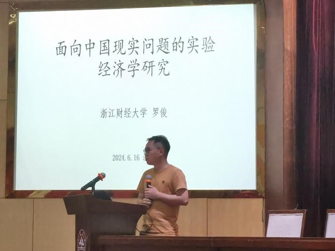 浙江财经大学罗俊教授进行了题为《面向中国现实问题的实验经济学研究》的报告。首先,罗教授指出,中国丰富的社会背景和独特的文化情境为经济学实验提供了广阔的“试验场”,能够为实验经济学贡献具有独创性的研究实例。其次,报告介绍了面向中国问题的实验经济学研究的具体方法,并提出了一系列实验经济学研究主题,包括城乡融合与区域协调发展、教育公平与教育高质量发展、人口结构优化与人口高质量发展等领域。最后,罗教授指出,尽管实验经济学在中国已有了一定的应用和影响,但仍需进一步推动其在重大现实问题上的应用,要讲好中国故事,展示实验经济学的科学属性和应用前景,建立和扩大实验经济学的学术共同体,与政府、企业和组织合作,推动更多优秀的面向中国问题的实验经济学研究。