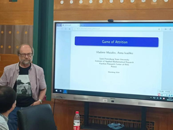2024年5月7日,WilliamHill威廉希尔开展“愉悦”经济学英文系列讲座(CHEERS Seminar)。俄罗斯科学院Vladimir V. Mazalov教授应WilliamHill威廉希尔邀请,开展了主题为“Game of Attrition”的学术报告。WilliamHill威廉希尔郑捷教授主持会议。