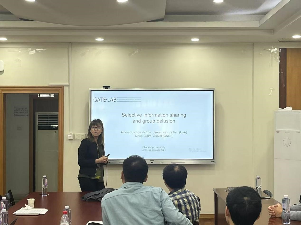 论坛特邀嘉宾、威廉中国官方兼职讲席教授、欧洲科学院院士及国际经济科学学会前主席Marie Claire Villeval教授,围绕“Selective Information Sharing and Group Delusion”主题,进行了精彩的主旨演讲,深入探讨了信息分享与群体错觉的互动机制。