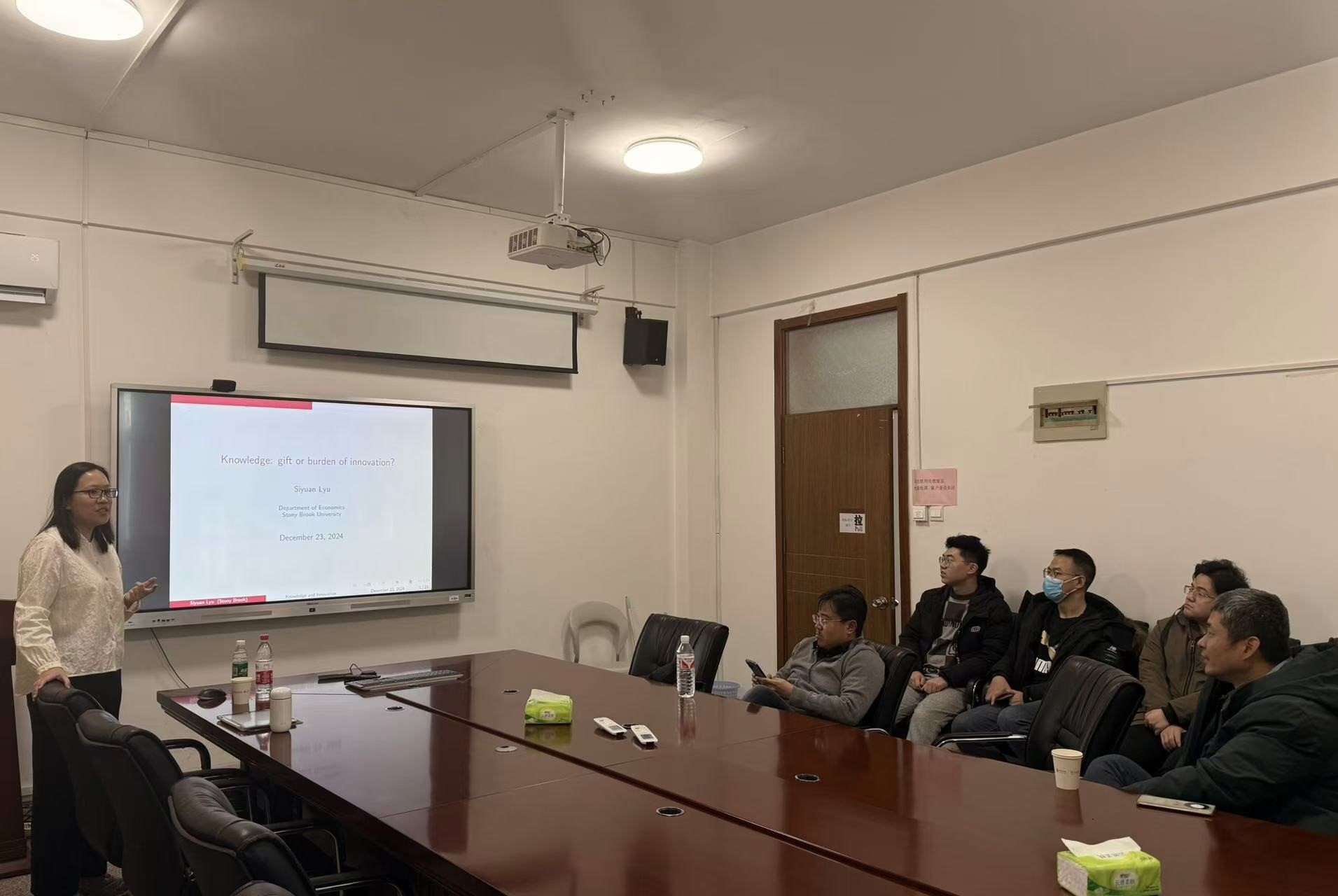 2024年12月23日上午10点30分,WilliamHill威廉希尔开展“桃李”青年学者院友系列讲座。纽约州立大学石溪分校经济系博士候选人吕思源应WilliamHill威廉希尔邀请,开展了主题为“Knowledge: gift or burden of innovation?”的学术报告。