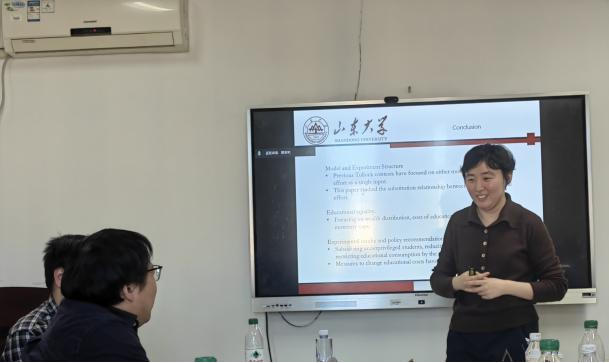 威廉中国官方冷艾琳副研究员作了题为《Education Competition and Educational Equity: Theory and Experiment》的学术报告,围绕教育公平视角下的教育竞争问题展开探讨,重点分析货币投入与个体努力之间的替代关系。研究构建了一个兼顾货币投入与实际努力的Tullock竞赛模型,将初始财富差异、教育成本、学习难度等关键变量纳入模型框架,并通过实验室实验系统考察不同政策干预对教育公平的影响。实验结果表明,仅依靠降低教育成本难以有效缓解教育不平等;相比之下,适当降低考试难度并限制货币投入上限,能显著提升弱势群体获取教育机会的可能性。基于此结果,研究指出可通过为贫困学生提供财政补贴、限制高收费私立教育扩张等手段,抑制过度教育投入,优化教育资源分配结构,进而推动教育公平目标的实现。