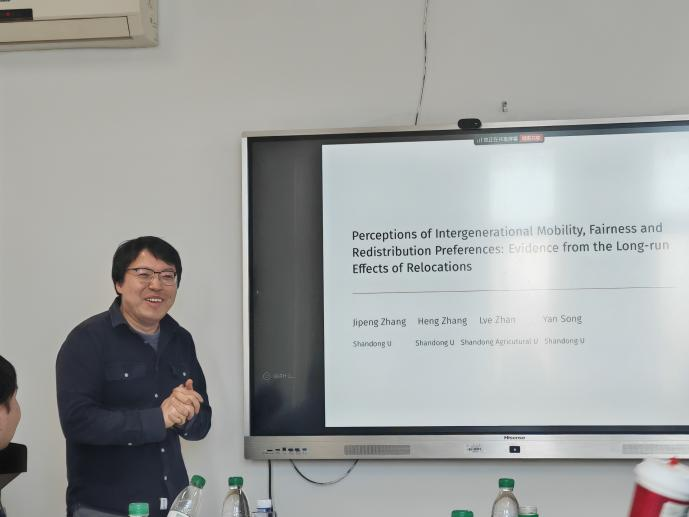 威廉中国官方经济学院张吉鹏教授作了题为《Perceptions of Intergenerational Mobility, Fairness and Redistribution Preferences: Evidence from the Long-run Effects of Reallocations》的学术报告。张吉鹏教授基于中国山东省1994年扶贫搬迁项目所构成的准自然实验,系统研究了政府主导的人口搬迁政策对代际流动性感知、公平性感知与再分配偏好的长期影响。通过对搬迁实施30年后的427户搬迁家庭与563户非搬迁家庭进行混合调查,研究发现:第一,搬迁显著增强了个体对向上社会流动的乐观预期:搬迁者认为其后代跃升至最高收入阶层的概率提升了12.3个百分点,同时降低了对再分配政策的支持程度,偏好强度下降幅度为13至17.4个百分点,验证了“流动性感知抑制再分配需求”的理论机制。第二,异质性分析显示,低教育水平、低收入群体以及较年轻的搬迁者在流动性感知方面的提升更为显著,而女性与高收入搬迁者的再分配偏好下降幅度更大。第三,尽管搬迁显著影响了流动性认知,但对公平信念的作用并不显著,这是由于公平观的形成时点晚于搬迁干预,且个体成年后的城乡迁移趋同效应对其产生了调节作用。这一研究通过长期追踪调查与工具变量识别方法,提供了“激励型扶贫能够促进自足心态”的因果证据,对传统“福利依赖”假设提出挑战,并为优化搬迁政策设计与公共政策干预路径提供了重要启示。