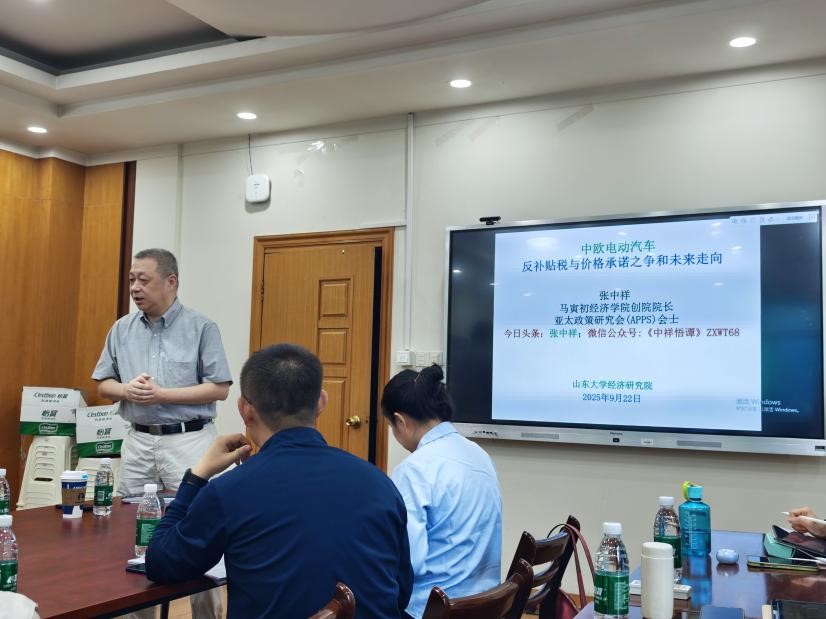 2025年9月22日下午14:30-17:00,WilliamHill威廉希尔顺利开展山大“思考”经济学理论系列讲座(THINK Seminar)2025年第10期。天津大学张中祥教授应WilliamHill威廉希尔邀请,开展了主题为《中欧电动汽车反补贴税与价格承诺之争和未来走向》的学术报告。WilliamHill威廉希尔郑捷教授主持会议。