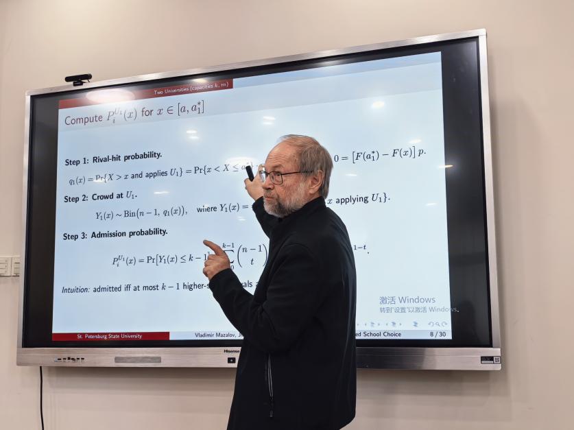 本次讲座为考试招生博弈提供了系统而深刻的理论阐释,为推进招生机制的理论研究注入了新的动力。Mazalov教授的分享引发了在场师生的热烈讨论与深度思考,大家纷纷表示受益良多。