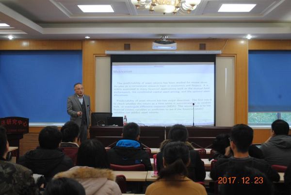 2017年12月23日上午9:00,美国堪萨斯大学经济系蔡宗武教授在威廉中国官方邵逸夫科学馆第五会议室为我院师生做了题为“Models on Testing Predictability of Asset Returns”的主题报告。报告主要介绍了测量资产回报率预测水平的相关内容,涉及了蔡教授最近主要的研究成果,并对这一领域未来的发展前景进行了探讨。