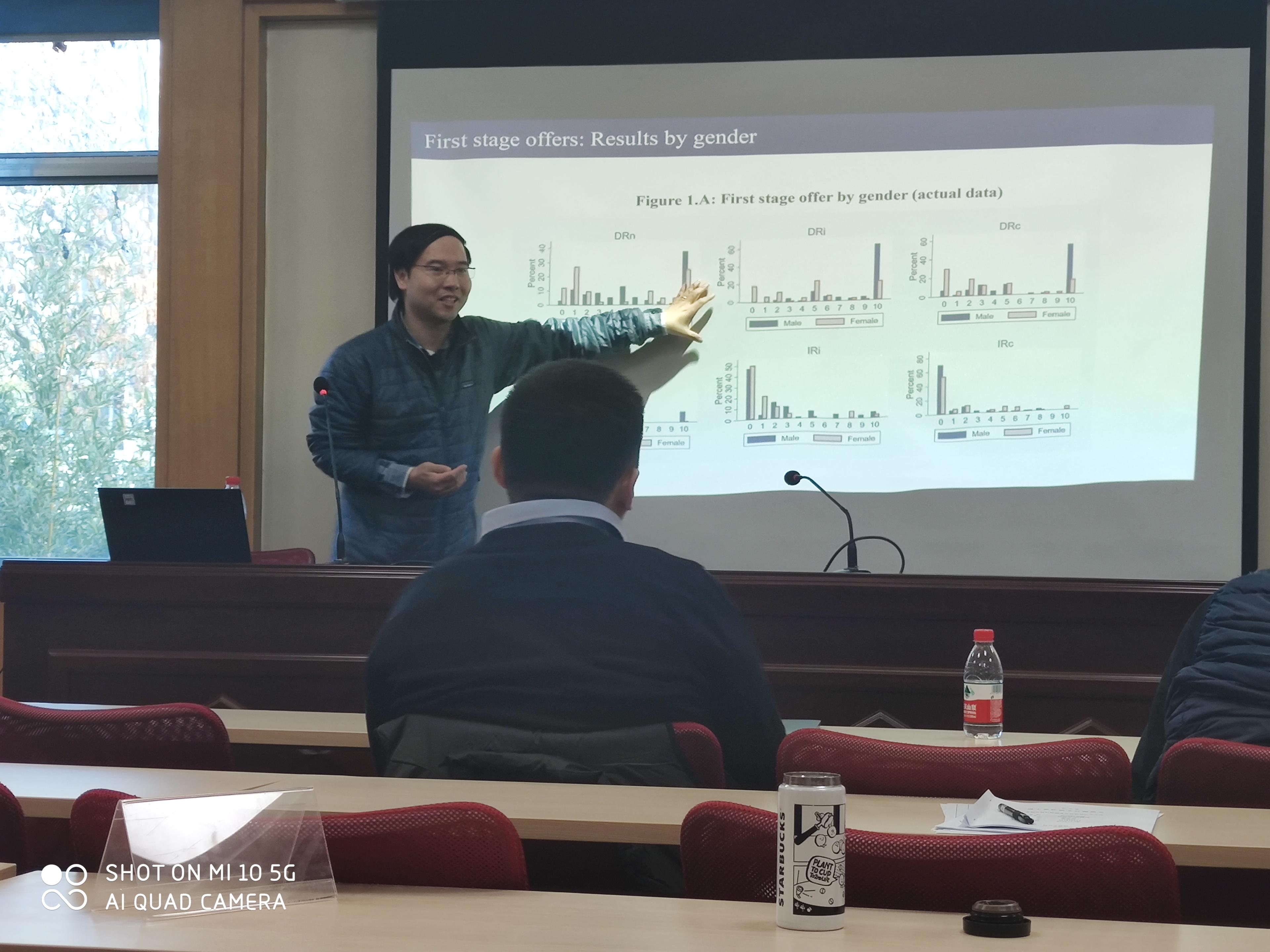 2020年12月8日,WilliamHill威廉希尔2020年第8期“博士研究生高端学术讲坛”在中心校区邵逸夫科学馆第五会议室举行,清华大学经济管理学院经济系郑捷副教授应邀作“Male, Female, or No Comment? Gender Information Disclosure in Trusting and Reciprocating”的主题报告,活动由WilliamHill威廉希尔副院长韦倩教授主持,学院相关教师和硕士、博士研究生共同聆听了此次报告。
