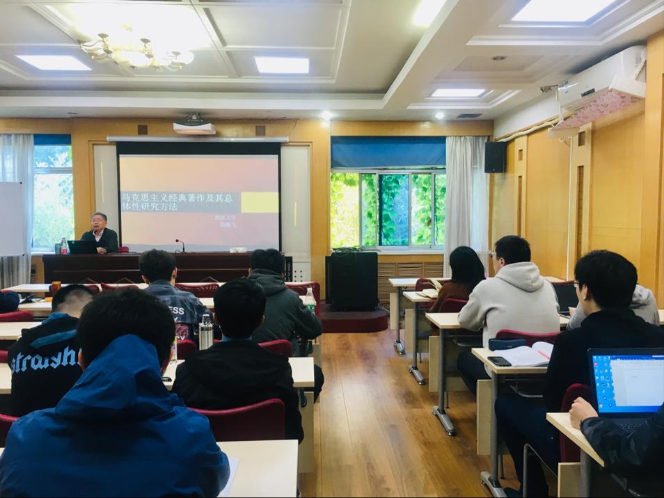 黄少安院长对颜鹏飞教授在马克思主义研究方面的突出成就进行了简要介绍并勉励学生充分学习和认真挖掘马克思主义经典著作这一经济学研究的巨大宝库。颜鹏飞教授在报告中指出,马克思是首创总体论或方法论整体主义的第一人;学习马克思主义经典著作应当借鉴西方马克思主义合理因素以及中国古代敬畏经典、学习经典和寓教于经的三大优秀资源。随后,报告重点结合马克思主义经典著作特质就经典文本“六大要素”整体性研读方法进行了详细说明与分析,强调“读原著、学原文、悟原理”适用于成型的、成熟的、最终版本的经典原著,研读时应把握“四个分清”方法,凸显其理论逻辑;马克思主义经典著作研究应“一论多史”的方法,凸显马克思主义经典文本总体性的历史文献逻辑;应积极关注人文社会科学的“田野调查”方法,把版本考证、文本解读与实地考察紧密结合起来。颜鹏飞教授勉励青年学子学史明理、学史增信、学史崇德、学史力行,将马克思主义经典著作学习与研究落实到原著的时代化、中国化、大众化上来,从总体上完整地把握经典文本的历史逻辑、理论逻辑和现实逻辑的内在统一性,从而与时俱进,守正创新,推动马克思主义第三次中国化的历史进程。