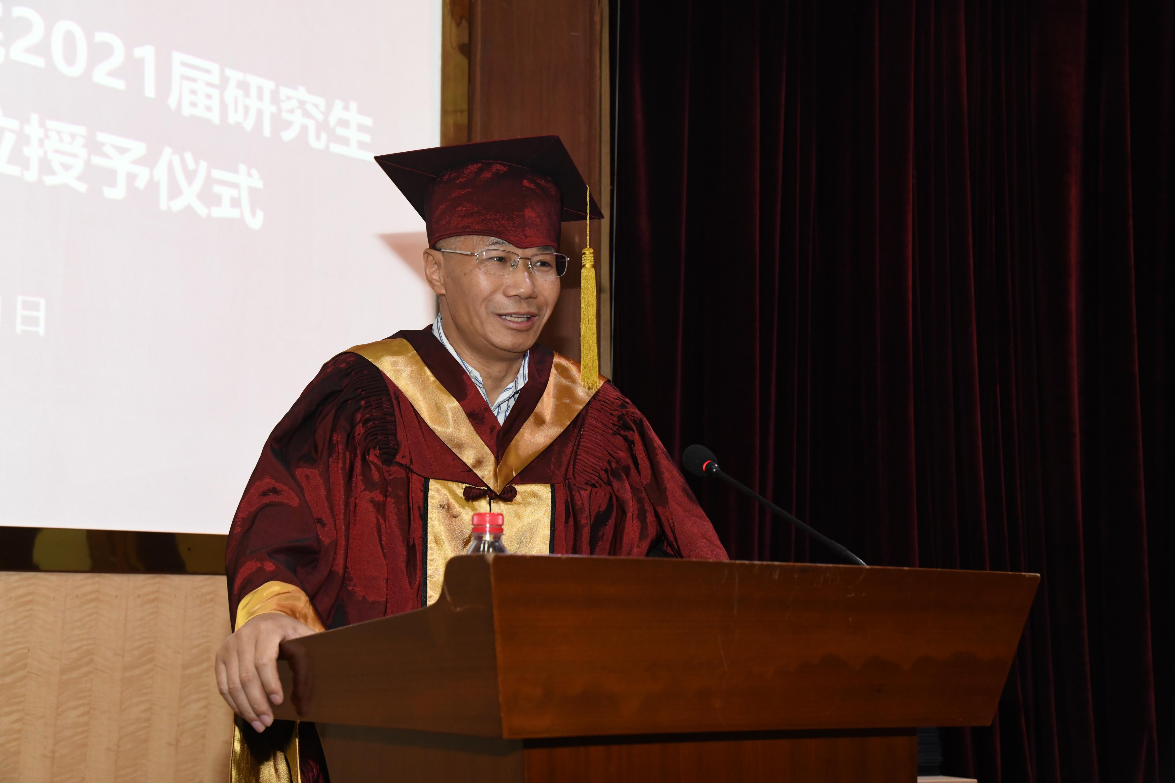 随后,在校研究生代表致辞,2020级硕士焦银亿感谢学长学姐在生活学习上的帮助,他们悉心的答疑解惑与课后辅导使自己又找到学习动力,学院优良的学风和大家刻苦的学习精神使他耳濡目染,经研人的优良品格使他倍感奋进。2018级博士刘晓红回顾了她与同窗成长的点滴,感谢学院提供了宝贵的学术平台以及大家在日常生活、科研工作等诸多方面的帮助,表达了对毕业生同学们的深切祝福和依依惜别之情,表示全体在校生必将以优秀毕业生为榜样,保持家国情怀,一如既往的坚守经研人“底气、霸气、灵气、正气”的本色,铸造经研院新的辉煌。