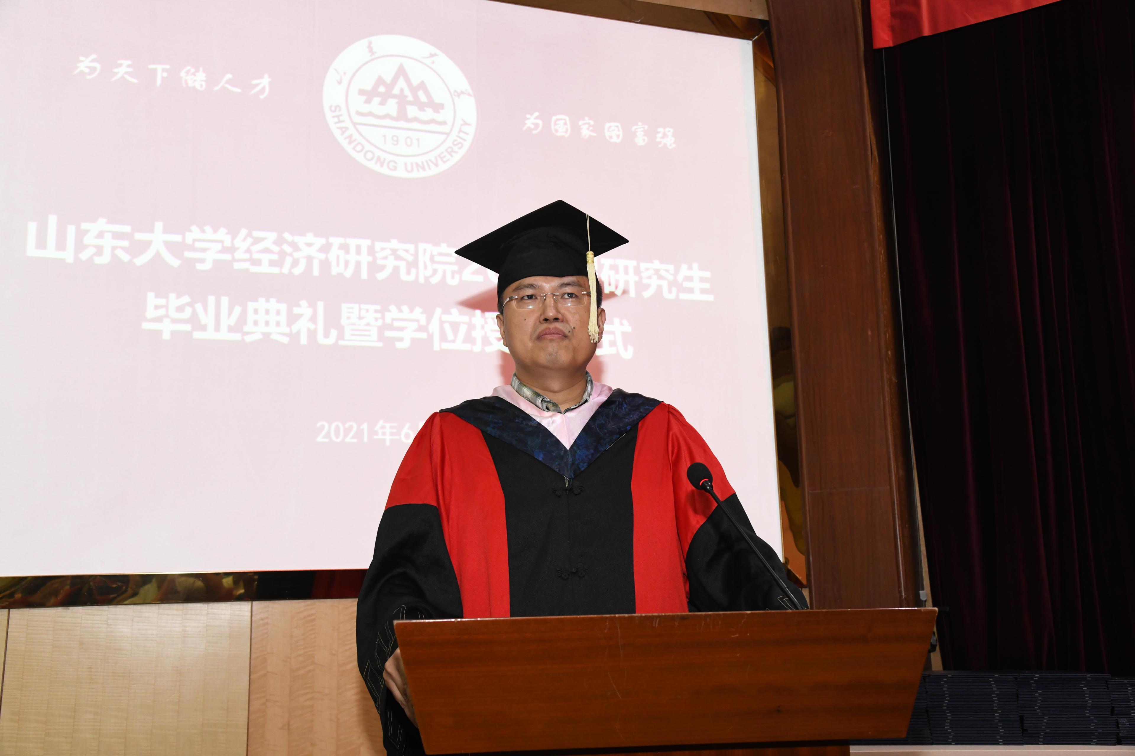 致辞后,黄少安院长为每位毕业研究生颁发学位证书并依次拨穗合影。在铿锵悠扬的《山大校歌》、《二十年后再相会》歌声中,毕业典礼顺利结束,各位毕业生的经研院时光画上了圆满句点。