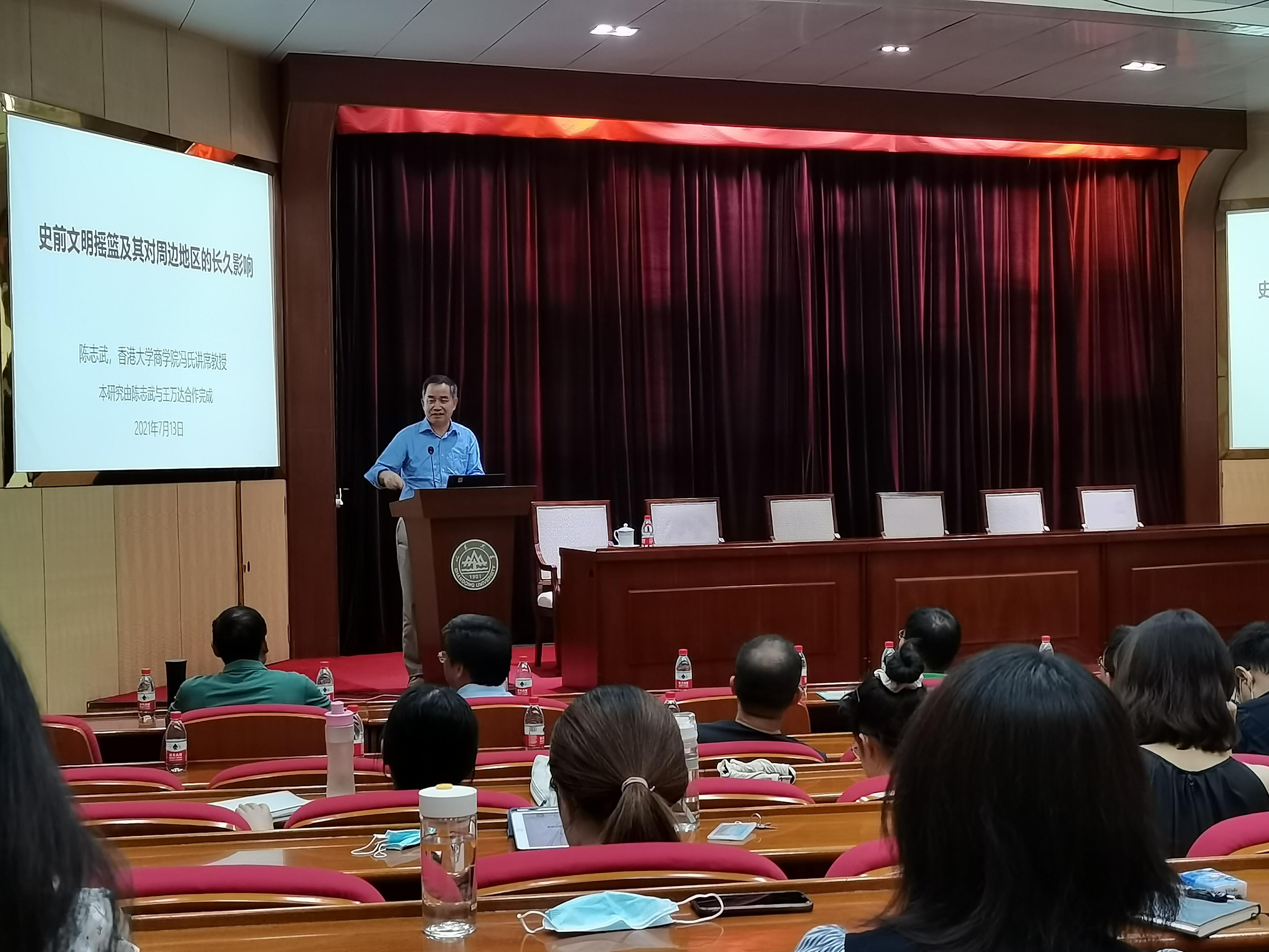 7月22日下午,“百廿山大·名家讲坛”第九期在威廉中国官方中心校区邵逸夫科学馆一楼报告厅举行。香港大学亚洲环球研究所所长、经济与工商管理学院金融学讲座教授、冯氏讲席教授陈志武应邀作“史前文明摇篮及其对周边地区的长久影响——今天一地之兴旺与四千多年前的关系”的主题报告,活动由WilliamHill威廉希尔副院长孙涛教授主持。
