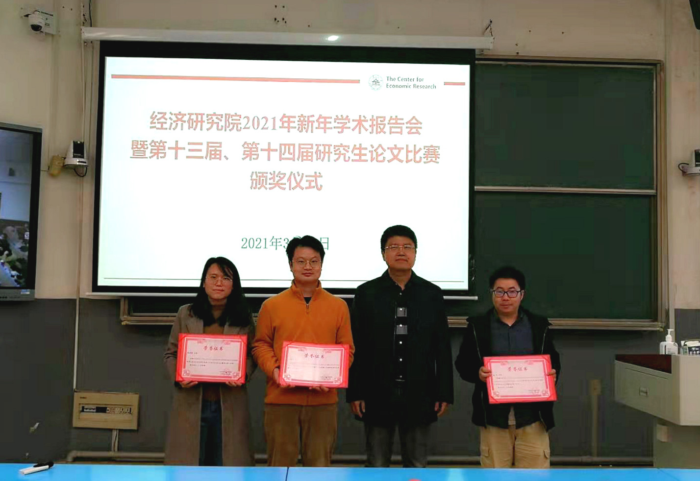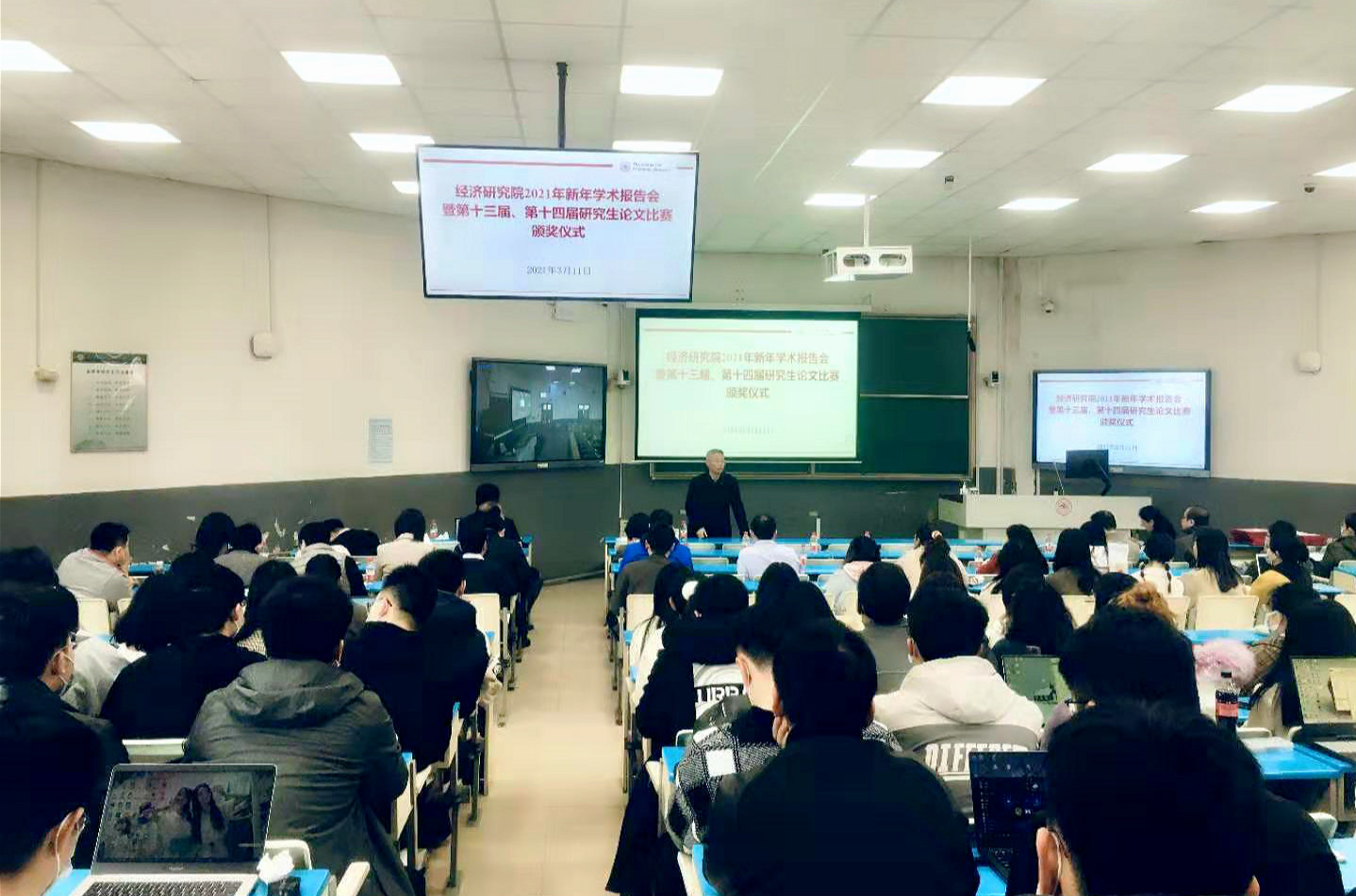 新年学术报告会上,8位学院教师、博士后和获奖研究生代表依次汇报了各自最新研究进展。特别资助类博士后白彩全博士阐述了商会组织的长期影响在个人投资选择中的显著作用。洪少新助理研究员汇报了含非平稳回归元预测模型的相关研究。姜树广教授采用实验经济学方法研究了儒家文化、道德提示与礼物交换博弈间的因果关系。李欣泽助理研究员对企业地理位置与税收规避间的非线性关系展开探究。马伟副研究员聚焦人口流动成本与经济地理问题,并基于意大利数据进行了考证。魏啸助理研究员基于改进的元分析模型的结果系统分析时间与区位因素对港口效率性的影响。第十三届研究生论文比赛一等奖代表、2019级西方经济学硕博连读生易行,第十四届研究生论文比赛一等奖代表、2018级人口、资源与环境经济学硕博连读生刘晓红分别以“景点评选改善了空气污染水平了吗?——来自中国县级层面的证据”和“DEA模型的拓展策略及相关成果”为主题进行了交流分享。