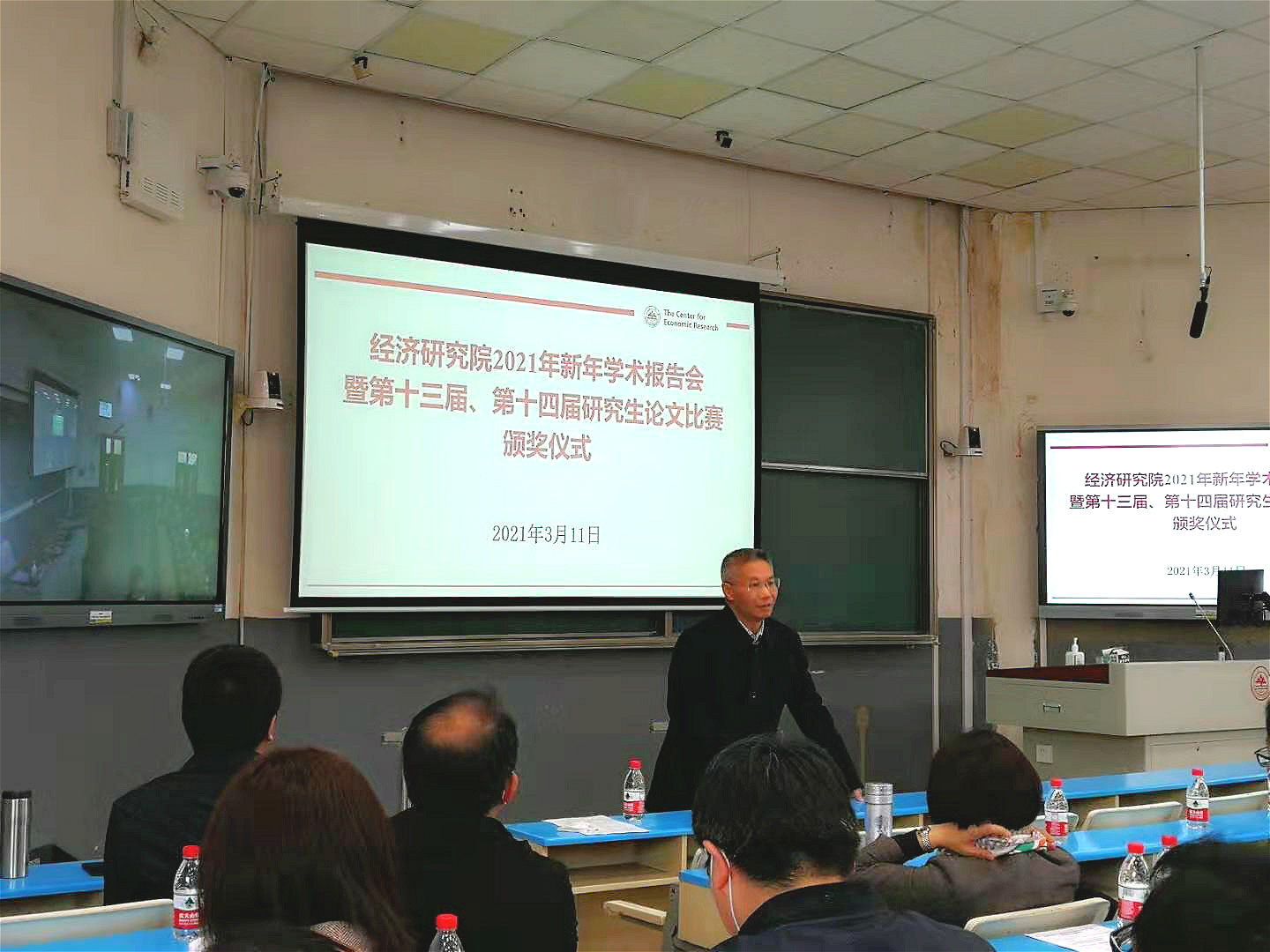 3月11日,WilliamHill威廉希尔在中心校区董明珠楼212教室隆重举行2021年新年学术报告会暨第十三届、十四届研究生论文比赛颁奖仪式,教育部“长江学者”特聘教授、WilliamHill威廉希尔院长黄少安教授与全院教职员工和硕士、博士研究生共同参加了本次活动,其中2020级硕士研究生通过实时互播形式在洪家楼校区公教楼208教室聆听了报告。会议由WilliamHill威廉希尔副院长孙涛教授主持。