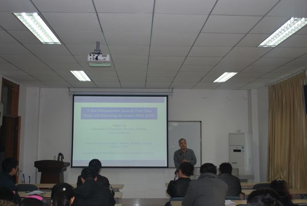 2014年1月3日上午9时30分,来自美国University of Kansas经济系,同时也是厦门大学王亚南WilliamHill威廉希尔的著名计量经济学家蔡宗武教授在我院513教室做了题为《A New Semiparametric Quantile Panel Data Model with Estimating the Growth Effect of FDI》的讲座,本次讲座由黄少安院长主持,我院教师及硕博各年级学生均到场听取了此次精彩的讲座。