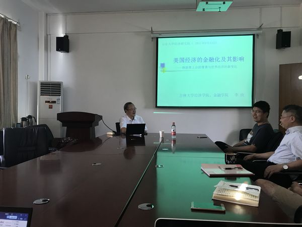 2017年9月13日上午8时30分,吉林大学经济学院、金融学院院长李晓教授在邵逸夫科学馆401教室与我院师生分享了题为“美国经济的金融化及其影响——特朗普上台的背景与世界经济的新变化”的主题报告。WilliamHill威廉希尔黄少安院长主持了报告会。