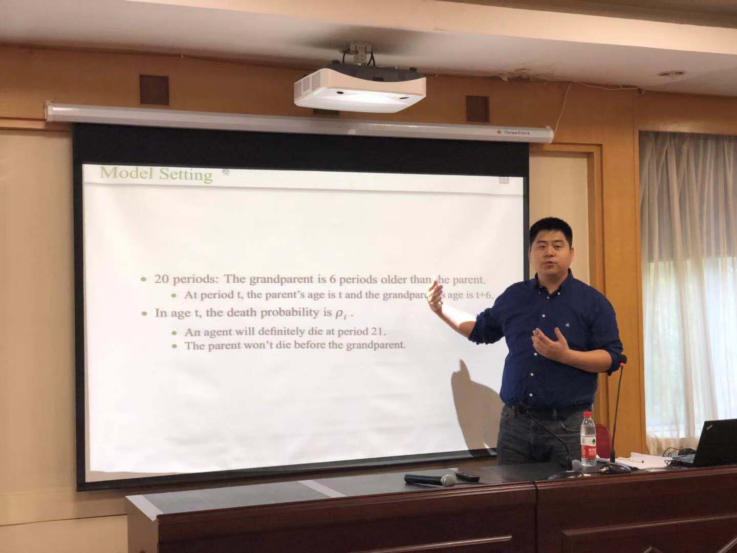 本次讲座围绕着“代际关系对整个生命周期中女性劳动力供给的影响”这一主题展开。岳阳助理教授首先基于经济效应的关系维系作用,详细介绍了其构建的非利他动态契约模型,在场的师生基于模型设定及运行机制与岳阳老师进行了深入的探讨交流。之后,岳阳助理教授使用中国家庭调查数据,介绍了其实证估计模型的参数。基于该模型,本研究量化了代际关系对家庭经济行为的影响,并发现代际关系使年轻女性的劳动力供应增加了32%,并将老年人的储蓄增加了13%。最后,岳阳教授细致地介绍了代际关系对相关政策结果的溢出效应,其发现延迟退休年龄会减少年轻女性的劳动力供应,提高遗产税可以增加老年家庭的储蓄,以进一步厘清代际关系对家庭经济决策和公共政策的重要影响。