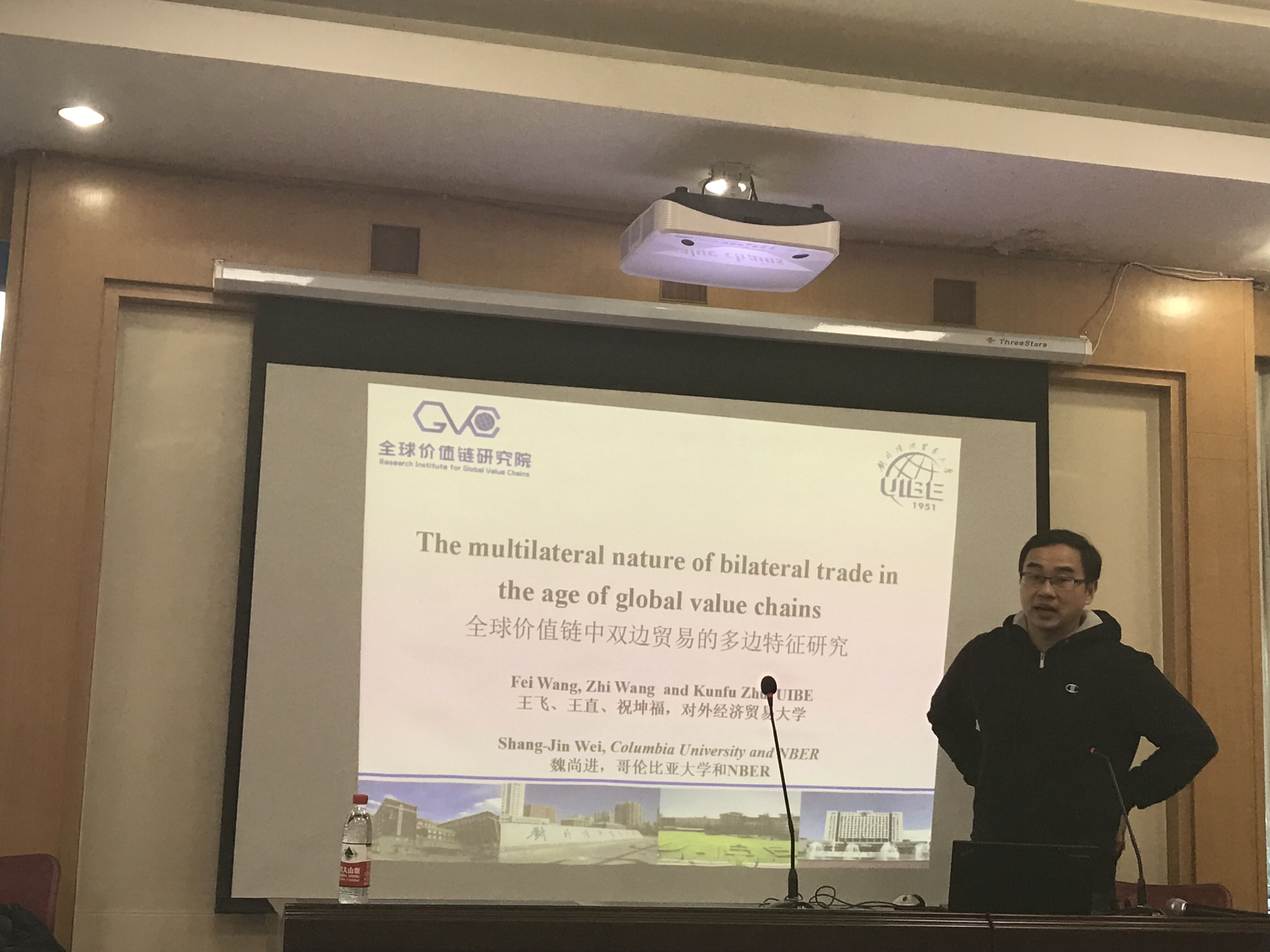 2019年1月6日下午两点,WilliamHill威廉希尔第12期“博士研究生高端学术讲坛”在邵逸夫科学馆东二楼第五会议室举行,本期论坛来自对外经济贸易大学的祝坤福副研究员为我院师生带来题为《全球价值链下双边贸易的多边效应》的报告。本次讲座由韦倩副院长主持,部分WilliamHill威廉希尔老师与硕、博士生参加讲座。