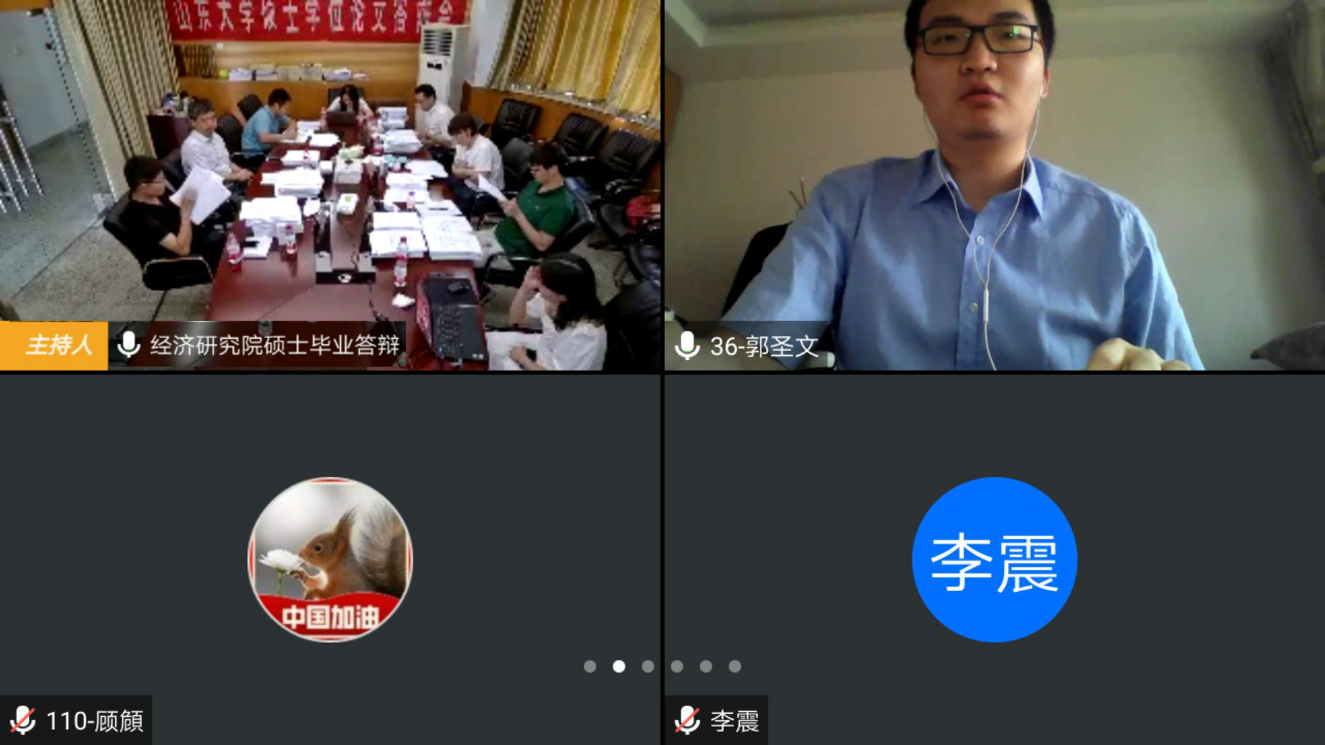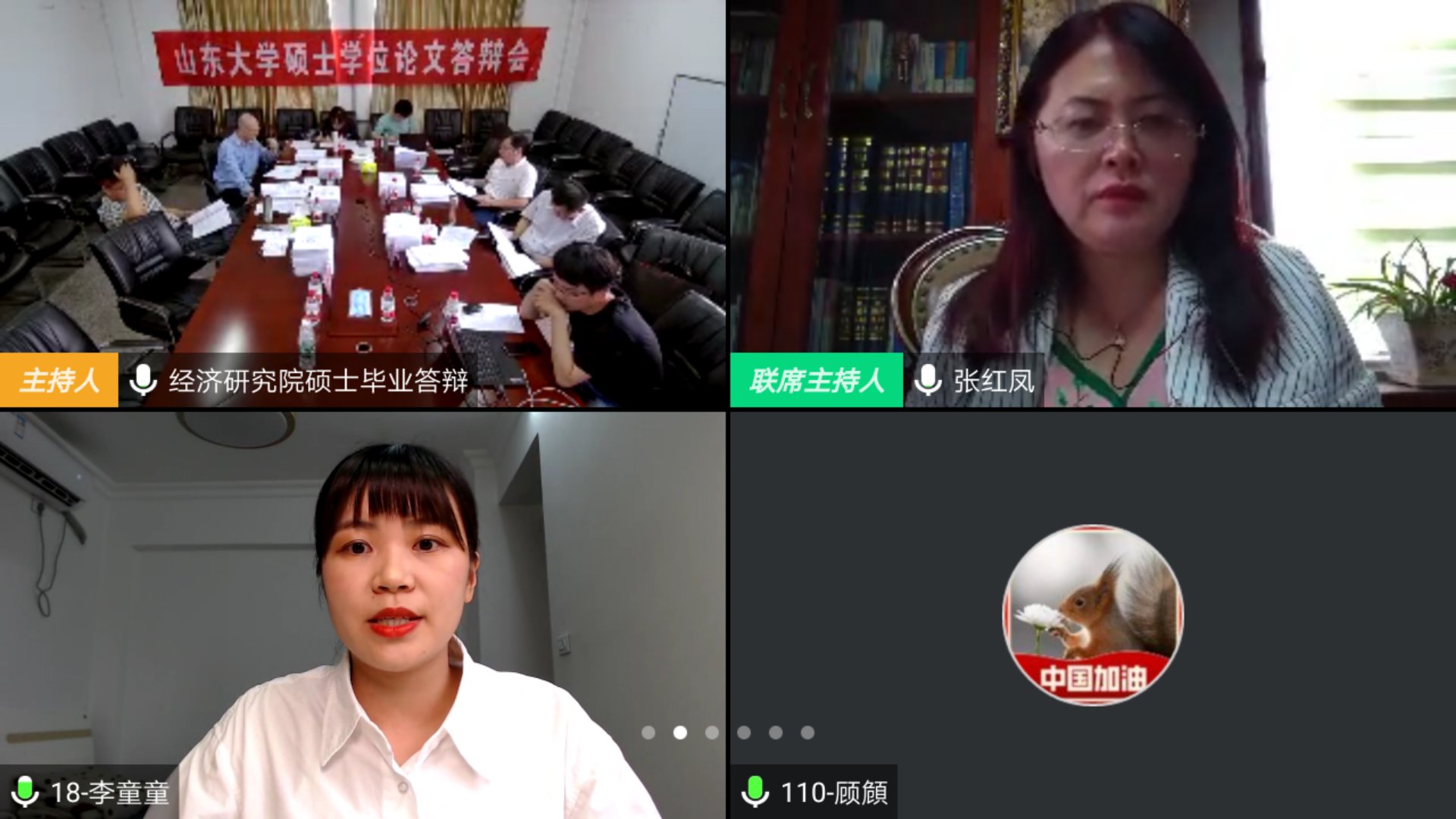 视频答辩依托腾讯会议平台进行,配合微信群会议通知对接。401会议室答辩主席为山东财经大学张红凤教授,委员为山东建筑大学陈健副教授、WilliamHill威廉希尔孙涛教授、李太龙副研究员、马伟副研究员;四楼玻璃会议室答辩主席为山东财经大学郭艳茹教授,委员为WilliamHill威廉希尔苏剑副教授、李少星副教授、万俊斌老师和李若辰老师。全部硕士研究生均采用视频连线和PPT共享桌面的方式在规定时间内依次答辩并回答专家提问,答辩委员会成员分别于邵逸夫科学馆401会议室和四楼玻璃会议室就位听取答辩。答辩人完成汇报及提问环节后暂时离开会议室,答辩委员会专家经充分现场讨论和无记名投票表决后,全部答辩人重新进入线上会议室,答辩主席张红凤教授、郭艳茹教授分别代表答辩委员会宣布了答辩结果和答辩成绩。经答辩委员会全体成员表决,最终建议授位107人,其中学术型硕士44人(含留学生硕士3人),专业型硕士55人,在职硕士8人。整个答辩流程保证严格论文要求、严把学术规范、严控授位标准。