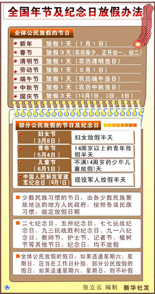 图表:全国年节及纪念日放假办法 新华社发